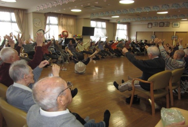 タップで閉じる一日の終わりに集団での体操を行います。円になり座ったまま出来る体操を全員で行います。円になって行うので、全員の利用者様の顔が見られ、他の方から刺激を貰う時間にもなります。